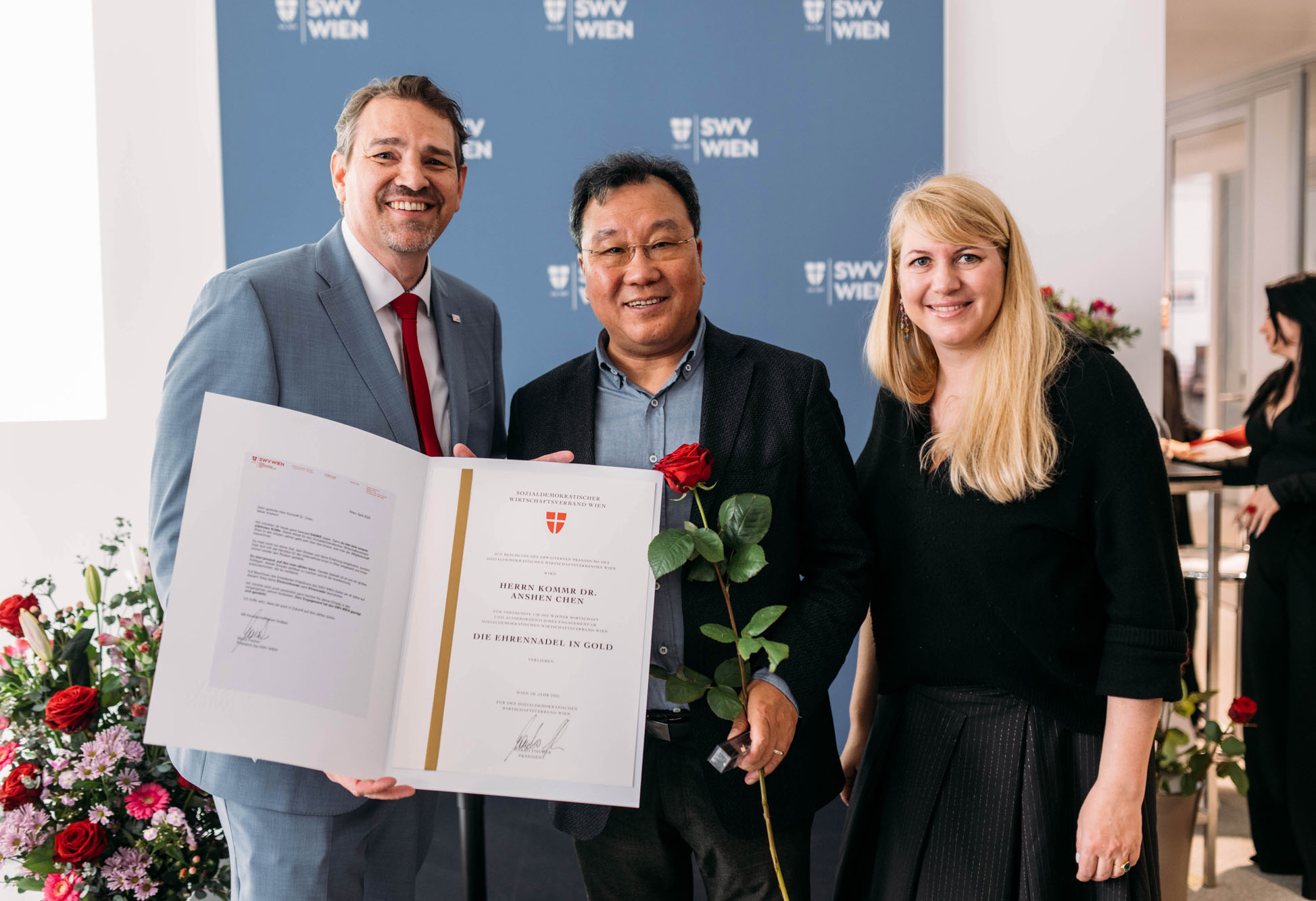 KommR Dr. Anshen Chen ist Unternehmer in vielen Bereichen, unter anderem sehr erfolgreich in der Gastronomie. Er ist sehr engagiert als Funktionär, als Mitglied des Landespräsidiums des SWV WIEN sowie als Vorsitzender der Arbeitsgruppe chinesischer Unternehmen. Er ist ein wichtiges Bindeglied zwischen den Wiener und chinesischen Unternehmer:innen.