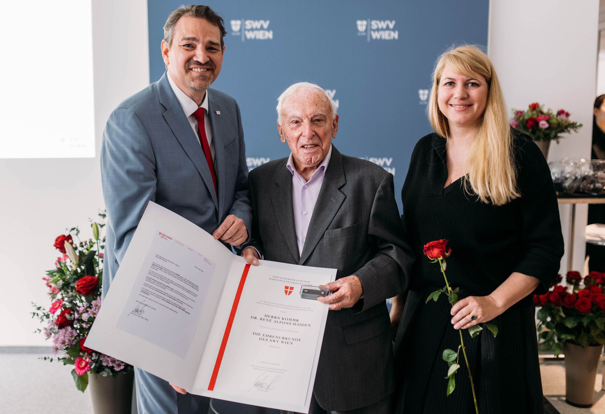 KommR Dr. René Alfons Haiden wurde mit der Großen Goldenen Ehrenmedaille der Wirtschaftskammer sowie mit dem Ehrenzeichen für Verdienste um die Republik Österreich ausgezeichnet. Als ehemaliger Präsident des SWV Österreich und als Generaldirektor der Bank Austria AG hat er sich über viele Jahre hinweg mit großem Engagement für die Anliegen der Unternehmerinnen und Unternehmer eingesetzt.
