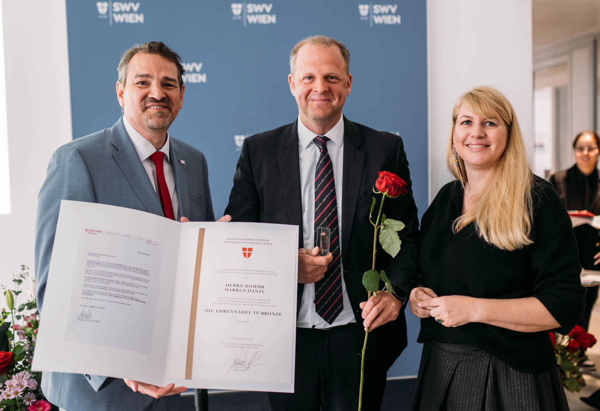 KommR Markus Hanzl wurde mit der Silbernen Ehrenmedaille der Wirtschaftskammer ausgezeichnet und ist ein profilierter Vertreter des Markthandels. Als Spartenvorsitzender des Handels im SWV WIEN, stellvertretender Spartenobmann in der Wirtschaftskammer Wien sowie als fachkundiger Laienrichter am Handelsgericht bringt er sein Engagement auf vielfältigen Ebenen wirkungsvoll ein.